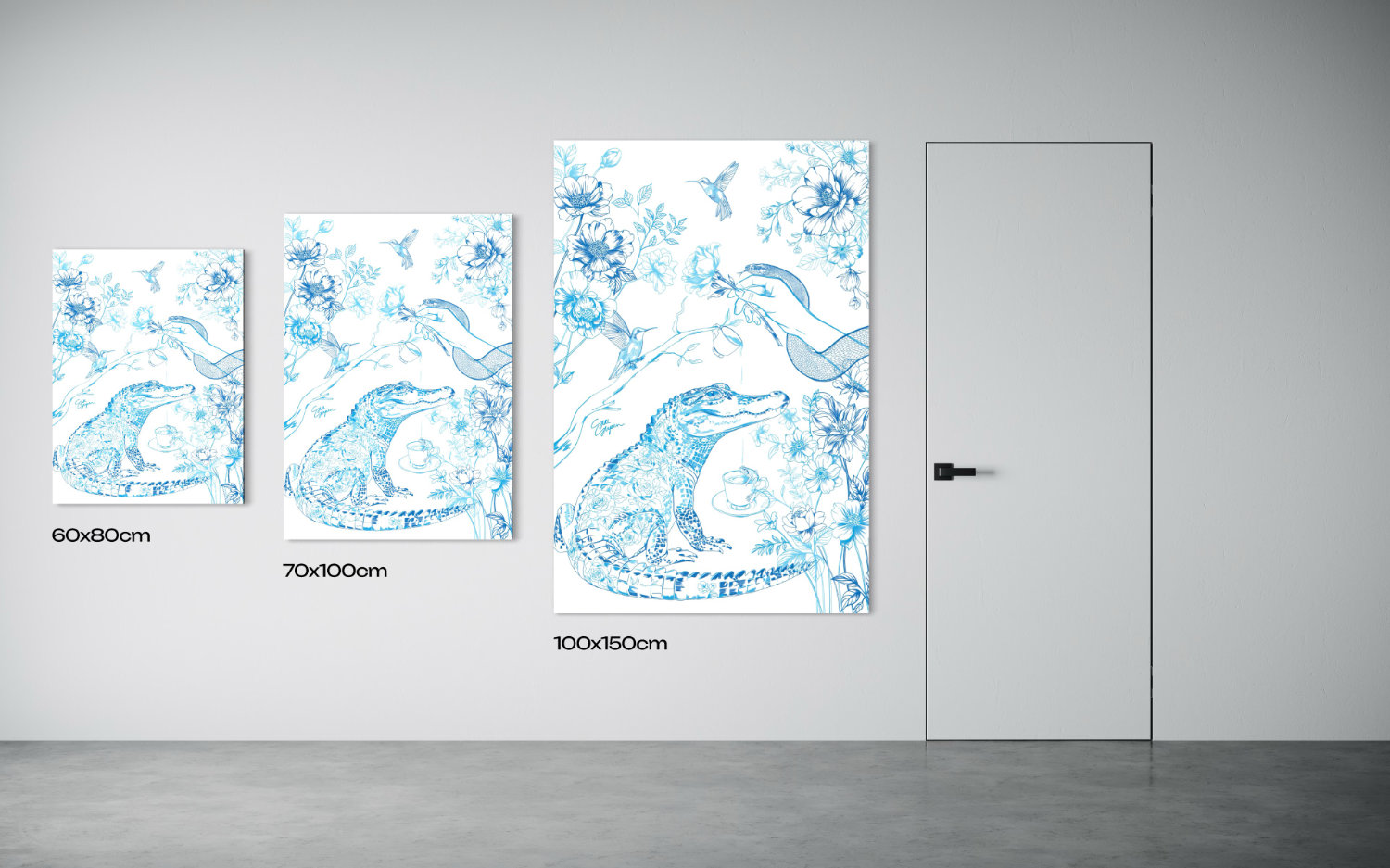 Om je te helpen bij het kiezen van het formaat dat het beste bij jouw interieur past, kun je hieronder de schaalvoorbeelden bekijken.