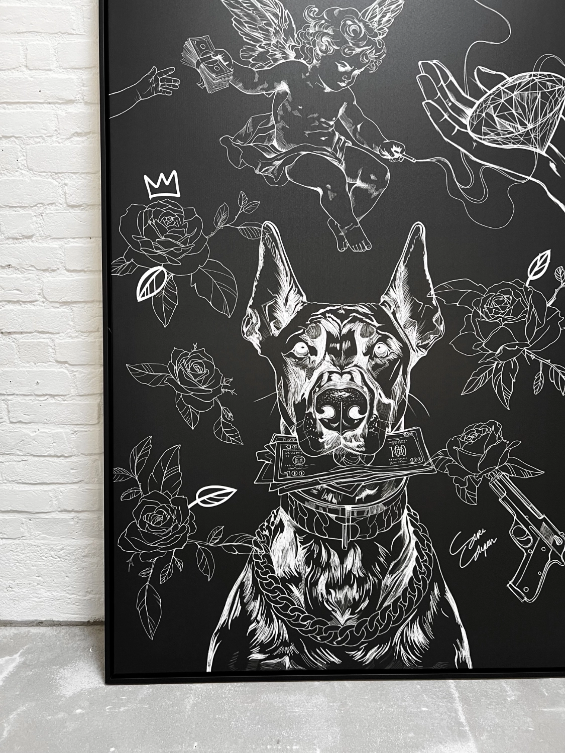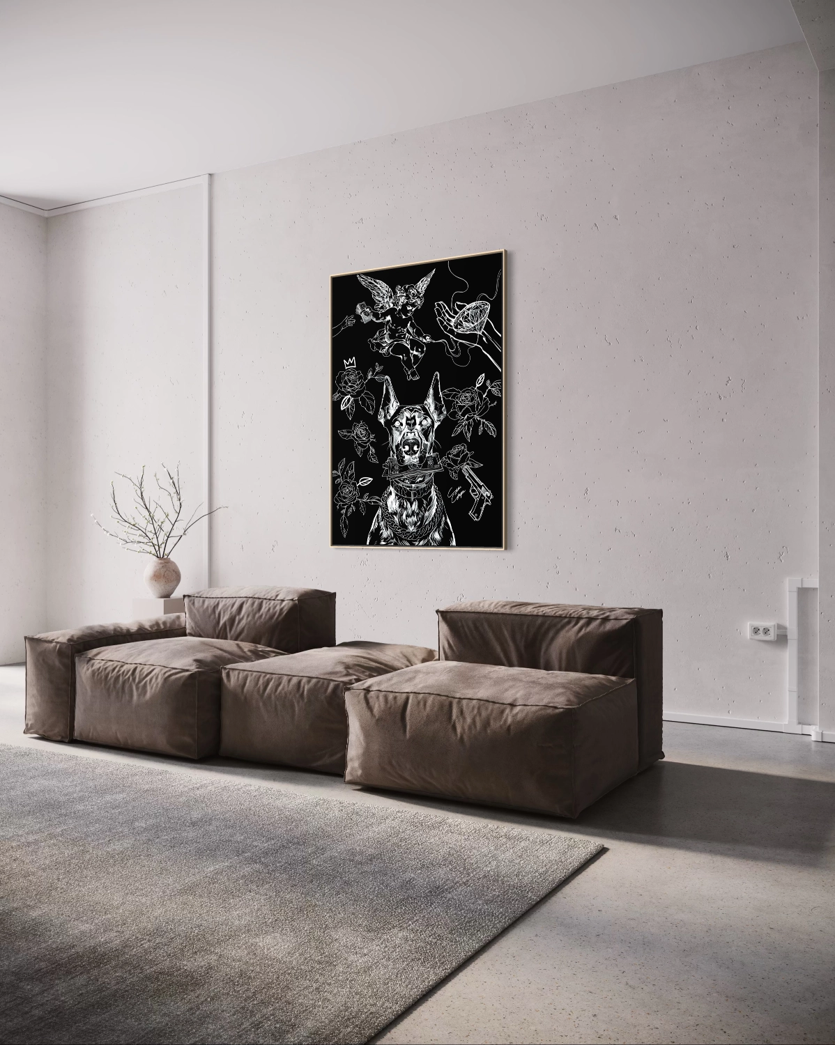 Elk kunstwerk wordt nauwkeurig gedigitaliseerd en verfijnd, met als uitgangspunt dat de kracht van de originele lijn volledig behouden blijft. Lijnvoering, spanning en detail worden geoptimaliseerd zonder het karakter van het werk te verliezen. De essentie blijft intact, alleen helderder, sterker en klaar voor print.